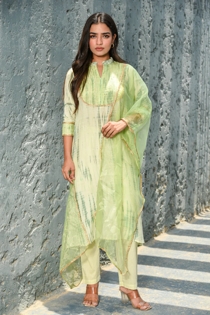 Green Shibori Kurta Set