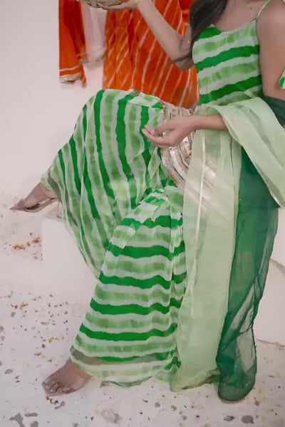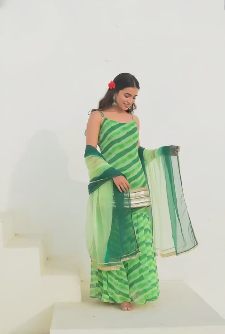 Green Leheriya Kurta Sharara Set for Holi 2026