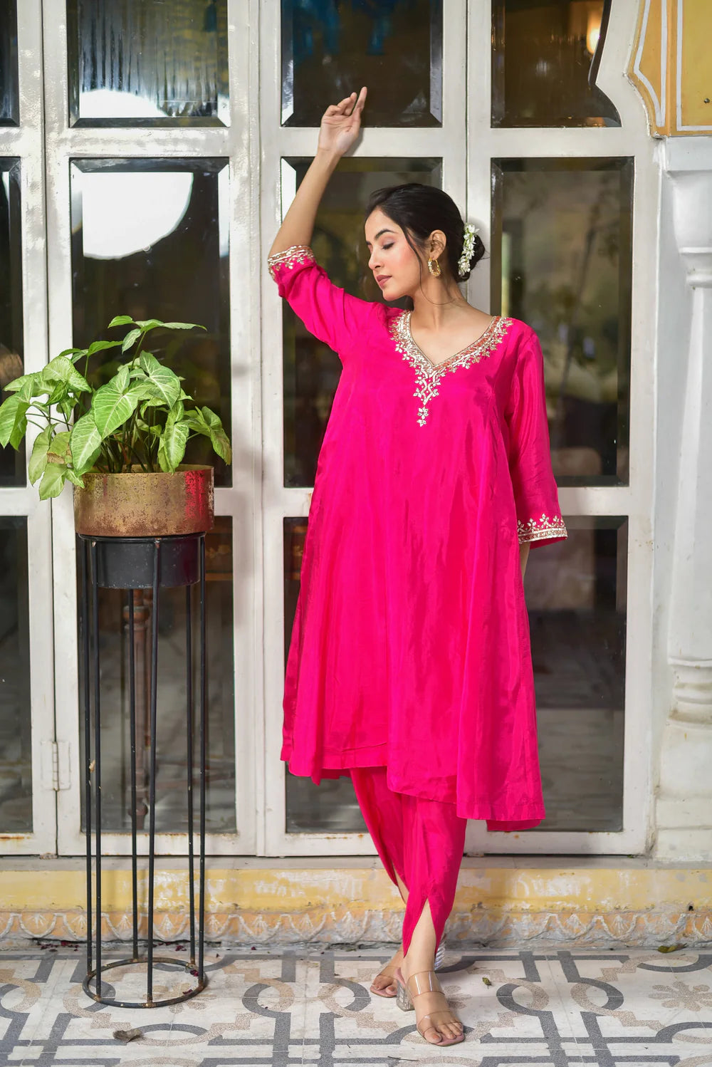 - Hand-embroidered Gotta Patti detailing on neckline and sleeves